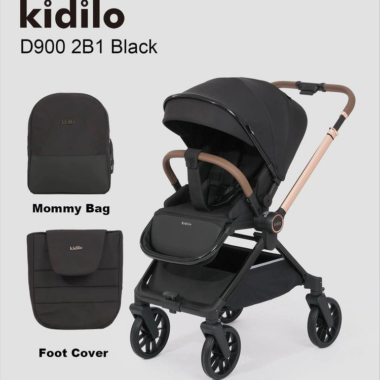 کالسکه کیدیلو مدل D900 چرخشی دسته دوطرفه ۴ چرخ۳۶۰-رنگ مشکی