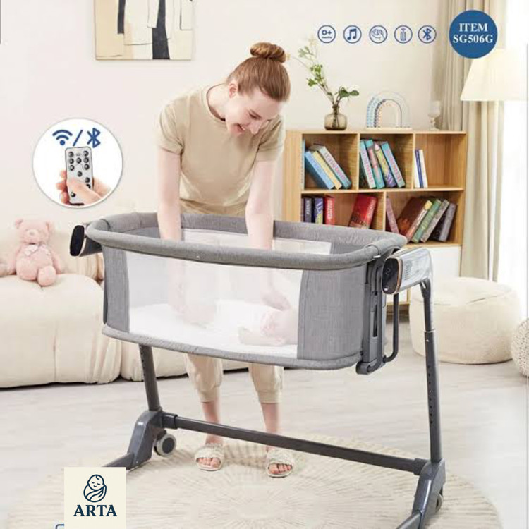تخت کنار مادر گهواره برقی قابلیت تبدیل به پارک بازی جای خواب قابل حمل صفحه تاچ 5 درجه تنظیم سرعت دارای موزیکال دارای تنظیم ارتفاع قابلیت ایجاد شیب آنتی رفلاکس دارای بولوتوث دارای تایمر دارای خوش خواب طبی دارای ریموت کنترل دارای پشه بند دارای چرخ دارای ترمز همراه آداپتور 5 ولت گهواره کشویی قابلیت قرار گرفتن روی تخت برند آلمان دارای CE اروپا تخت کنار مادر و گهواره سه کاره کیدیلو این تخت نه تنها یک تخت مسافرتی با کیفیت و زیباست بلکه به عنوان تخت کنار مادر،گهواره برقی و جای خواب قابل حمل کاربرد دارد گهواره این تخت اصطلاحا کشویی میباشد یعنی در صورتی که فرزند شما شروع به غلت زدن کند عملکرد گهواره مختل نمیشود. صفحه نمایشگر لمسی با قابلیت تنظیم سرعت ست کردن تایمر و پلی کردن موزیک البته این دستگاه دارای ریموت کنترل میباشد که به راحتی میتوانید تا شعاع سه متری از راه دور تخت را به کار بیاندازید. تخت کیدیلو مدل سه در یک دارای بلوتوث نیز میباشد تا با پخش کردن صدا های طبیعی یا صدای والدین کولیک نوزاد کمتر شود. دارای چرخ هایی با سایز مطلوب که حتی روی فرش به راحتی حرکت میکند البته هر زمان نیاز به ثابت شدن تخت داشتید میتوانید ترمز های آن را فعال کنید. این تخت بی نظیر قابلیت تبدیل به پارک بازی را نیز دارد که بعد از رسیدن نوزاد به سنی که بتواند روی پاهای خود ایستاده بماند کفه تخت ارتفاع بیشتری تا لبه میگیرد تا خطر افتادن نوزاد را تهدید نکند و البته محلی برای بازی نوزاد در طول روز. رویه قابل شستشو به همراه خوش خواب طبی