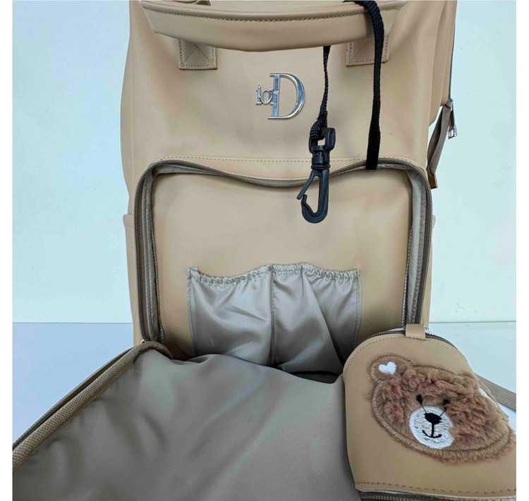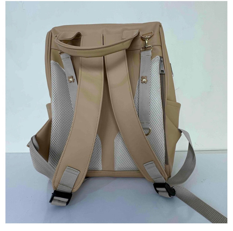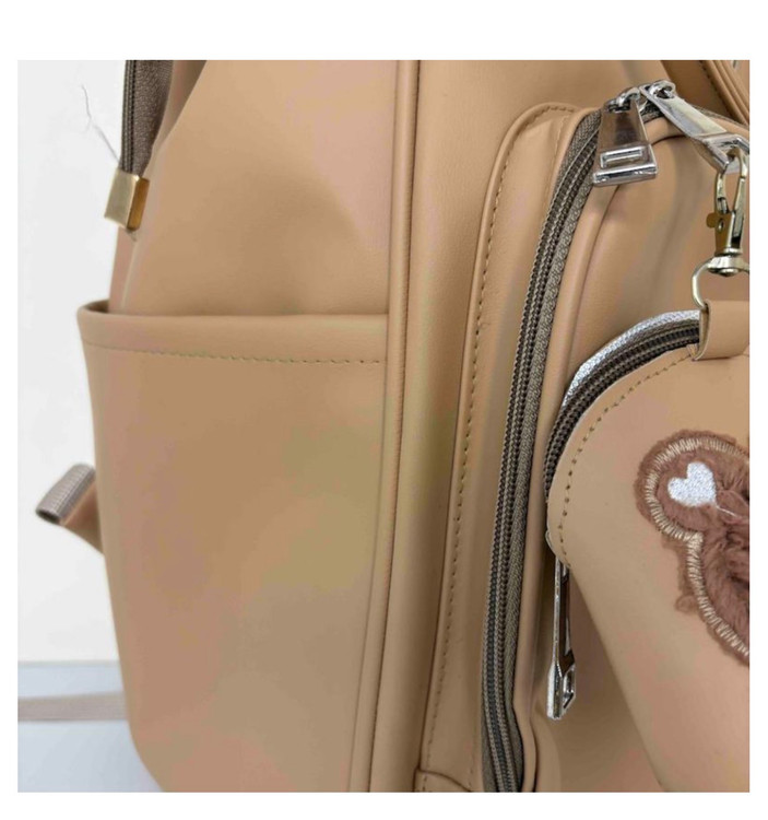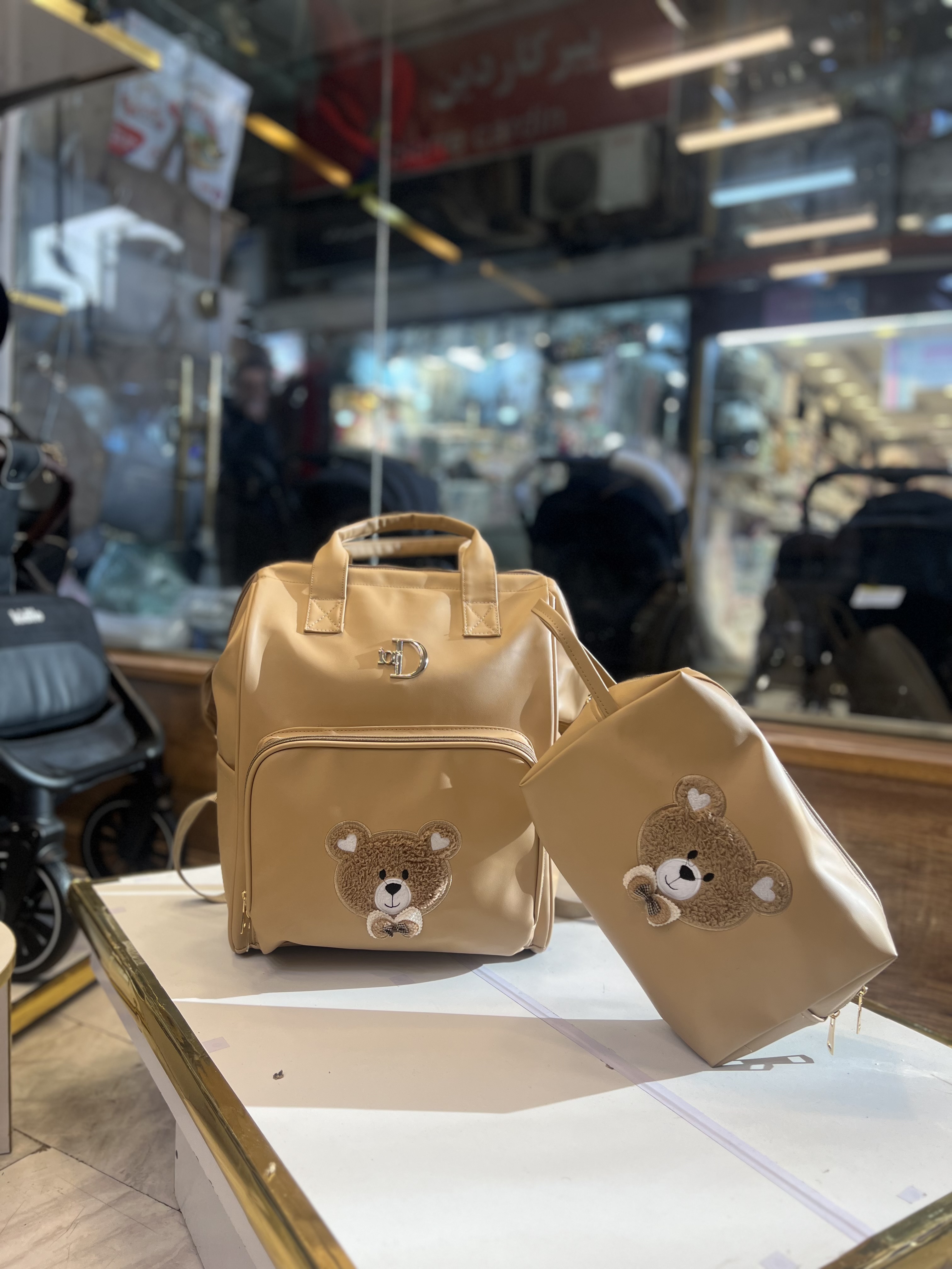 ساک لوازم نوزاد کوله شو چرمی مدل تدی رنگ عسلی