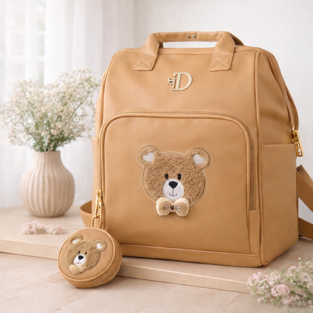 ساک لوازم نوزاد کوله شو چرمی مدل تدی رنگ عسلیناموجود